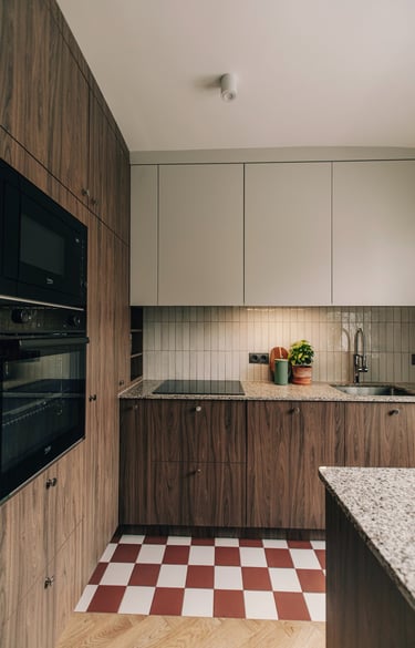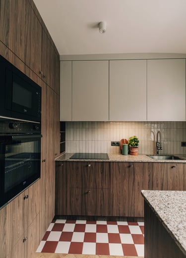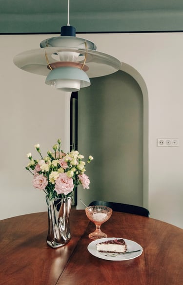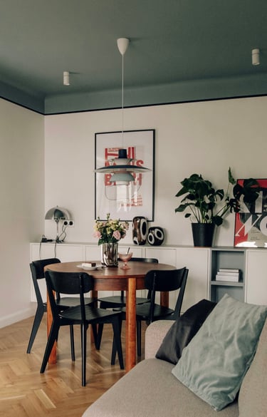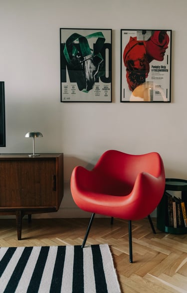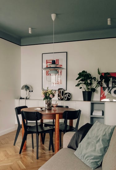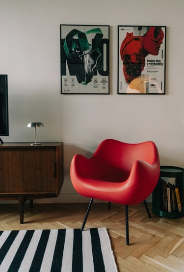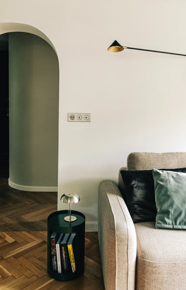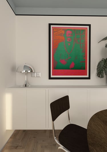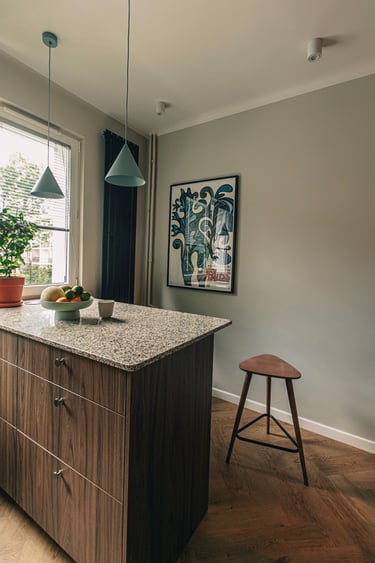 i” we wnętrzach są plakaty polskich artystów, m.in Krzysztofa Iwańskiego, stylistycznie nawiązujące do lat 60. i 70. – wybrane wspólnie, z czułością. Co warto podkreślić, zgodnie z decyzją Klientki, pracowałyśmy bez wizualizacji, na które przy takim tempie prac po prostu nie było czasu. Dziś wspominamy to zaufanie do naszej wizji z wielkim podziwem i wdzięcznością.