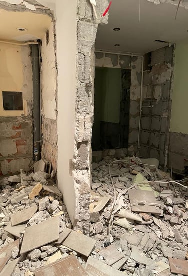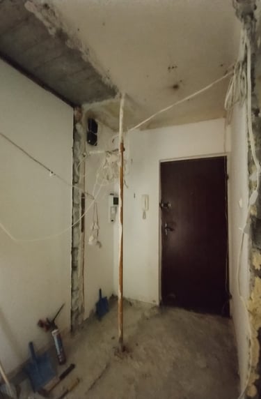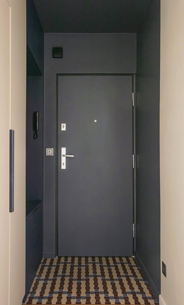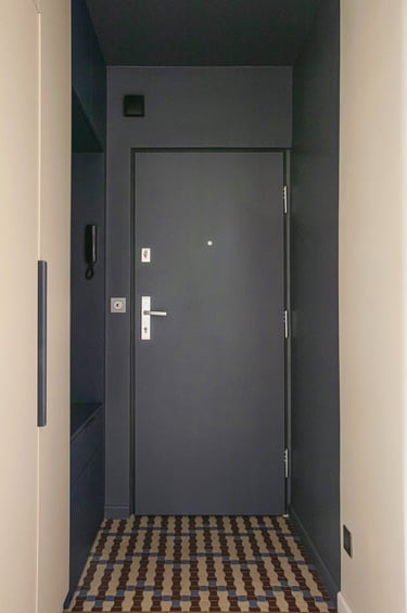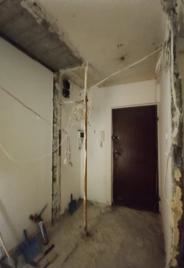 Klientka miała już zarezerwowany termin u ekipy budowlanej, a dopiero później zdecydowała się na współpracę z nami. Dodatkowo, ówczesna lokatorka mieszkania opóźniała wyprowadzkę. Weszłyśmy na pomiary dwa dni przed rozpoczęciem prac budowlanych. Już wtedy musiałyśmy wskazać ściany do wyburzenia i te, które miały dopiero powstać. Przez kilka tygodni nasze życie wyglądało tak: po godzinach pracy zawodowej wracałyśmy do domów, włączałyśmy laptopy i do późnej nocy rysowałyśmy kolejne rzuty i detale, aby rano przekazać je ekipie budowalnej, która wdrażała je bieżąco.